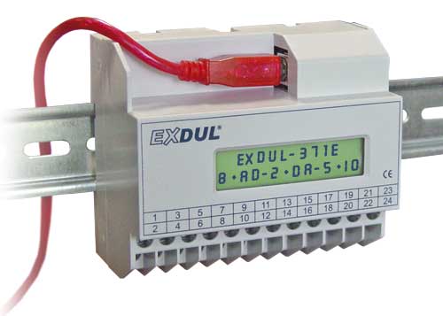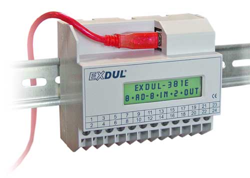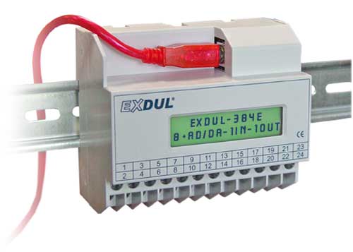 The EXDUL® USB modules from Messcomp® with up to eight analog inputs and eight analog outputs are ideal for use both in the laboratory and in industrial control. The analog inputs have the input voltage ranges of +/- 0.63 volts to +/- 10.2 volts and sampling rates of up to 100 kHz, which are common in professional control technology. The analog outputs deliver a current of 5 mA with a voltage range of up to +/- 10.2 volts. Usually one or more optocoupler inputs or outputs are available on these USB modules for switching purposes. The EXDUL-392 is a special measuring module for sensors. It has four voltage inputs as well as two current inputs. It also has three inputs for the direct connection of PT100 temperature sensors.